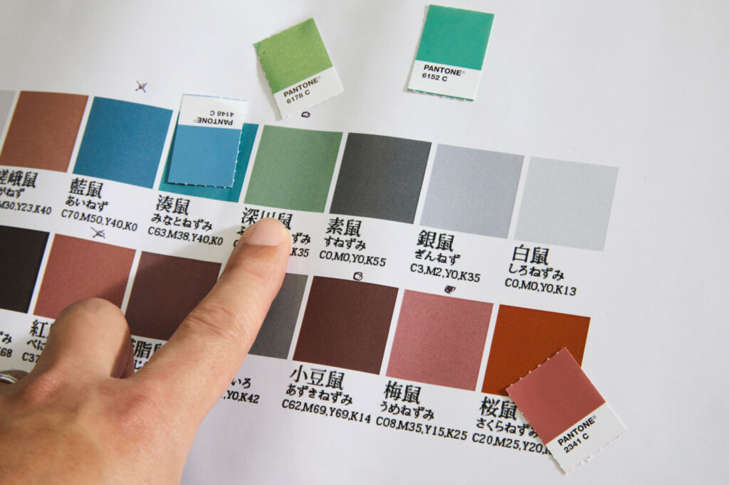 Egashira: This is a traditional color system called Shijūhatcha Hyakunezumi—literally, “48 shades of brown and 100 shades of gray.” These are traditional Japanese colors that became popular among townspeople after the Shogunate issued sumptuary laws prohibiting luxury in the late Edo period.